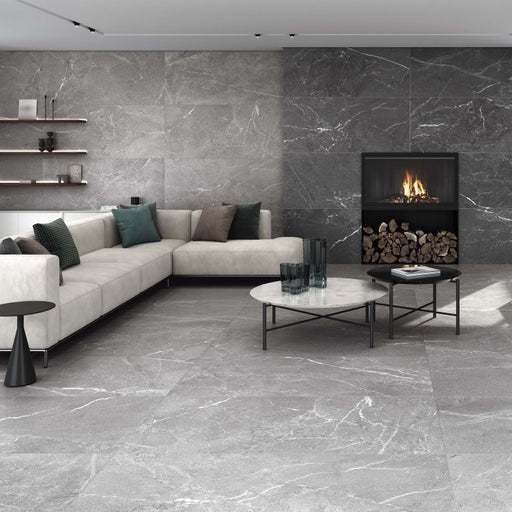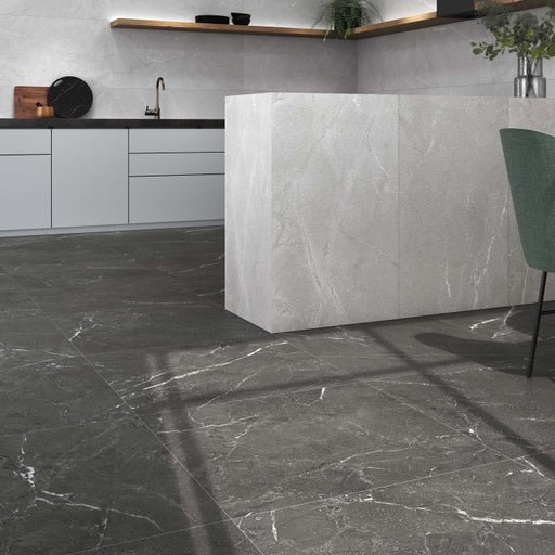 View full detailsMalek Grey 60 x 120 cm Porcelain Tiles offer a sleek, modern take on the marble effect, with a grey, slightly textured matte finish complemented by...