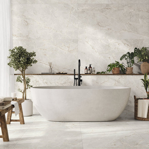 View full detailsNuances Pearl 60 x 120 cm Rectified Porcelain Tiles offer a stone effect design that combines elegance and versatility. These large-format tiles ar...