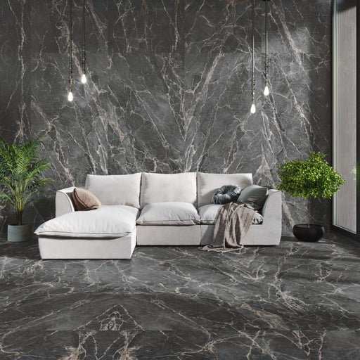 View full detailsMajestic Dark Grey Marble-Effect Porcelain Tile – 60x120cm Add timeless elegance to your space with our Majestic Dark Grey Porcelain Tile, sized at...