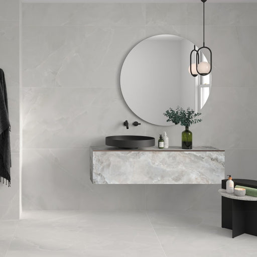 View full detailsMalek Pearl 60 x 120 cm Porcelain Tiles offer a refined and sophisticated marble effect with a light grey, slightly textured matte finish and delic...