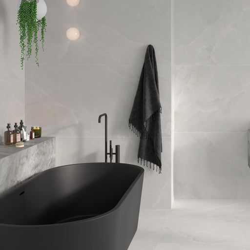 View full detailshe Scarlet White Onyx 60 x 120 cm rectified porcelain tiles offer a sophisticated and luxurious design with a matt finish that perfectly replicates...