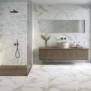 - Marble Design: The crisp white gloss surface is enhanced by elegant gold marble veining, offering the sophisticated appeal of marble with the durability of ceramic.