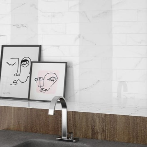 View full detailsCalacatta 7.5 x 30 cm Gloss Ceramic White Marble Effect Wall Tile – Timeless Elegance! Create a sophisticated and classic look in your space with ...