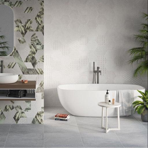 View full detailsPanama Hex25 22.5 x 25 cm Grey Mixed Lustre Pattern Hexagon Porcelain Tile is a distinctive and stylish tile designed to bring character and elegan...