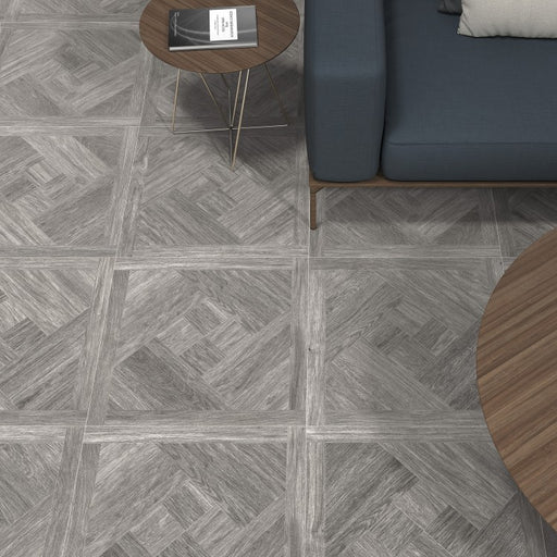 View full detailsBois Grey 60.8 x 60.8cm Porcelain Parquet Wood Effect Tiles – Textured Finish, Suitable for All Areas, Produced in Spain, 9 Faces, Available at Hyd...